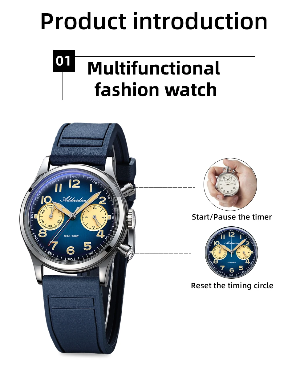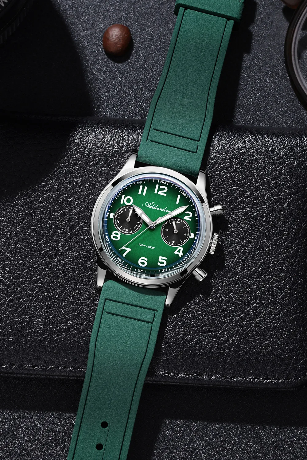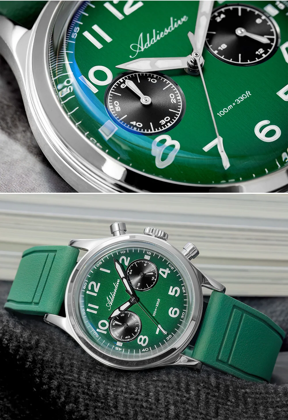 ADDIESDIVE Chronograph 38 mm Luminous Bubble Mirror 10Bar Waterproof Steel Watch for Men