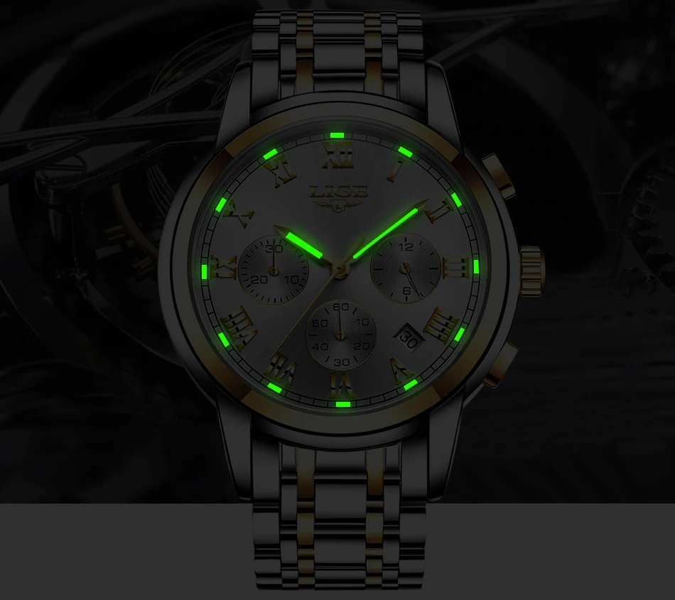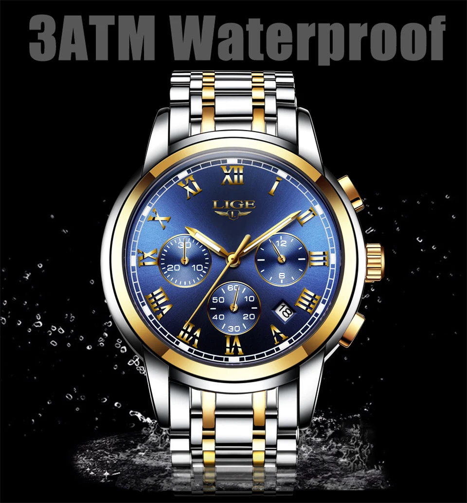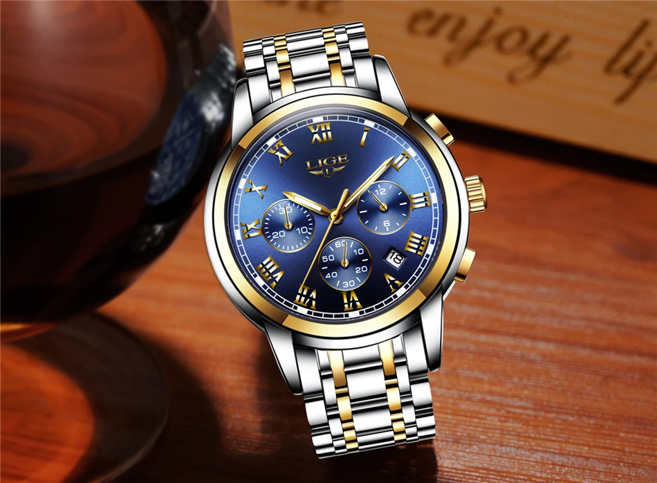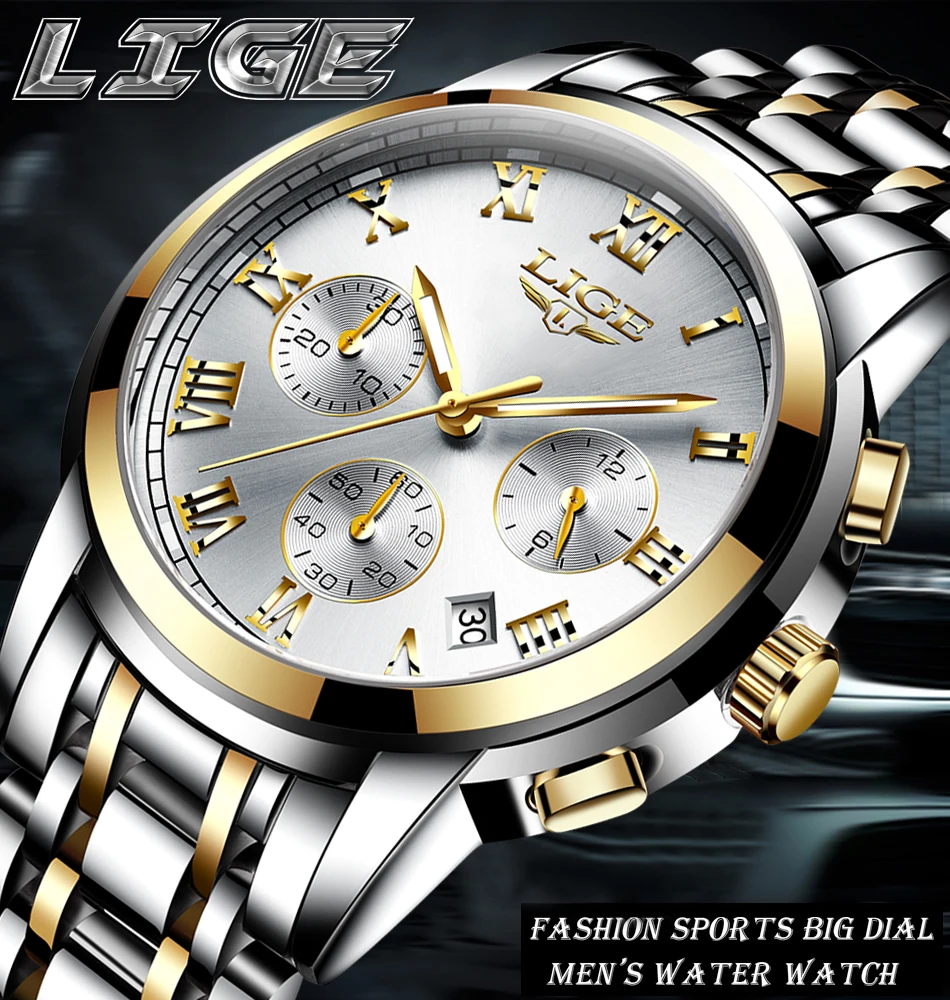 LIGE Fashion Luxury Quartz Watches for Men Business Waterproof Stainless Steel