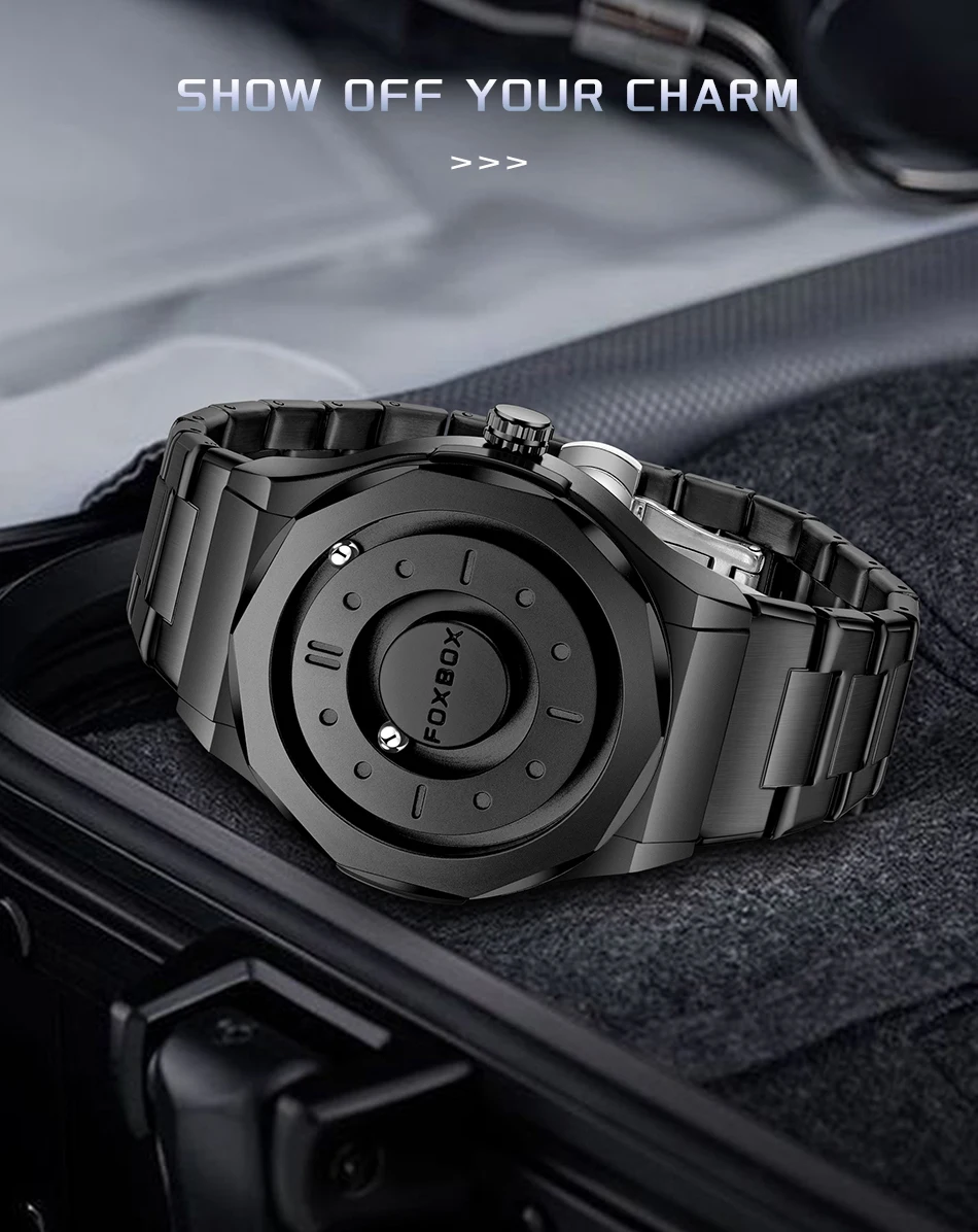 FOXBOX Magnetic Force Pointer Watch for Men waterproof