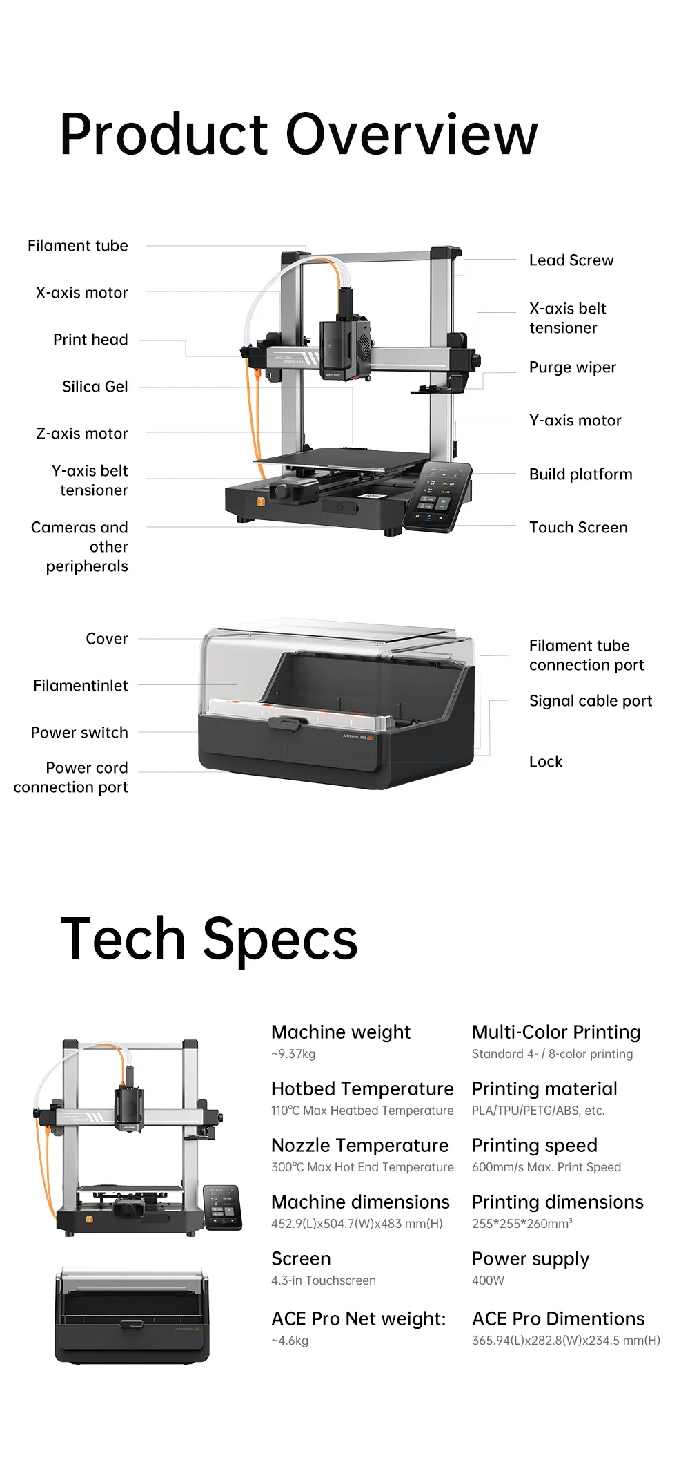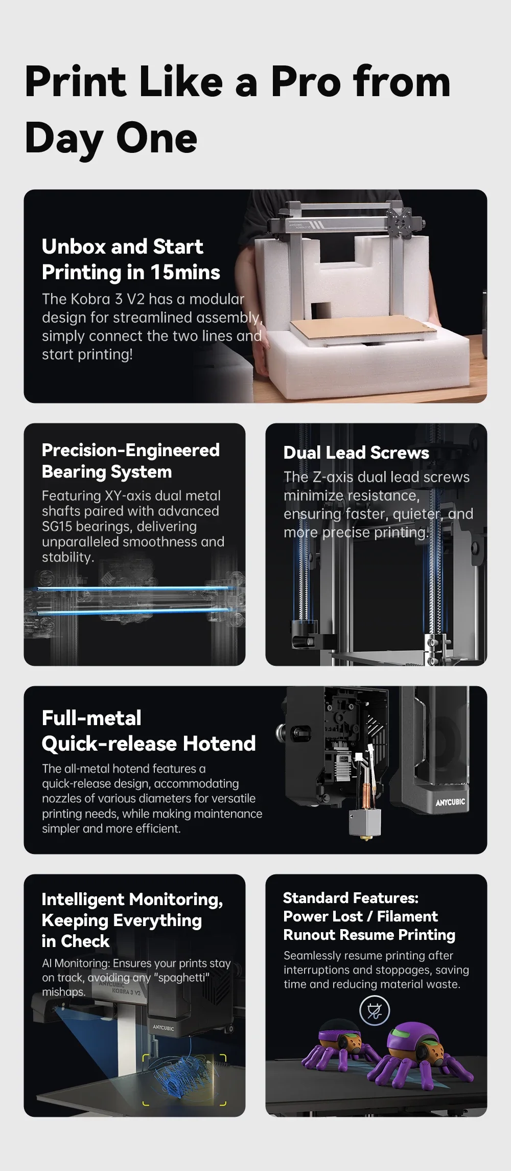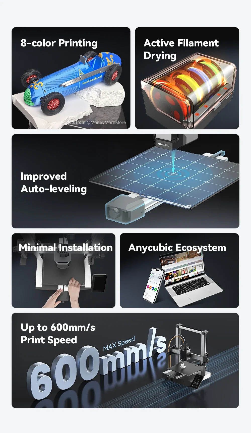New!ANYCUBIC Kobra 3 V2 Combo 600mm/s Fast Printing 3D Printer 8 Colors ACE Pro Filament Auto Leveling FDM Desktop 3D Printer