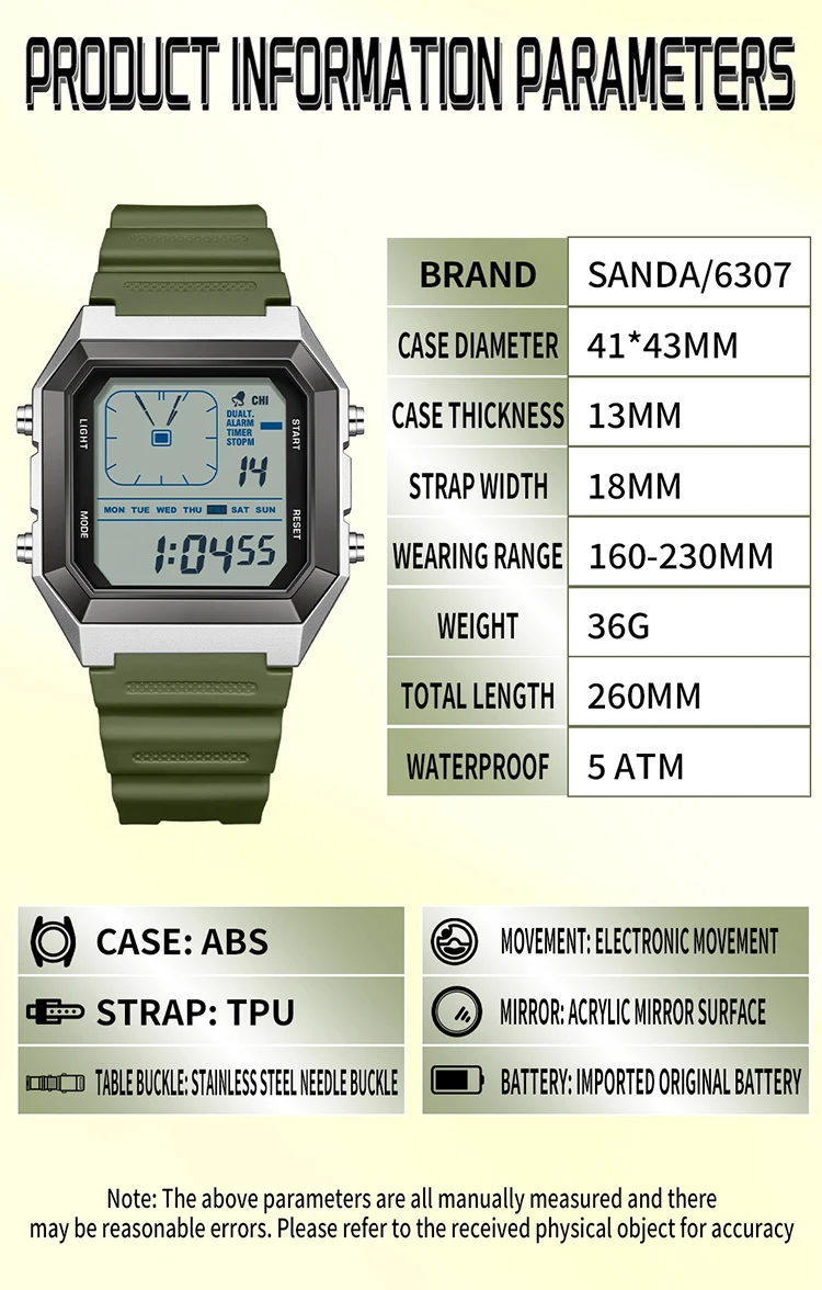 SANDA Digital Watches for Man Multifunction Luminous Chronograph Calendar Outdoor Sport Waterproof
